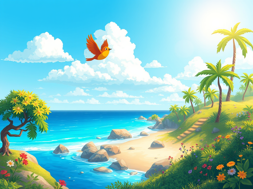 You play as a small bird exploring an island. From a gameplay perspective, the actions are easy to understand: